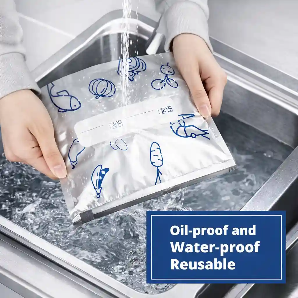 খাবার দীর্ঘ সময় সতেজ রাখতে ব্যবহার করুন Reusable Aluminum Foil Sealable Storage Bags। উন্নত মানের অ্যালুমিনিয়াম ফয়েল দিয়ে তৈরি এই ব্যাগগুলো খাবারকে বাতাস, আর্দ্রতা ও বাইরের দূষণ থেকে সুরক্ষিত রাখে। ফলে খাবার অনেক বেশি সময় সতেজ থাকে।