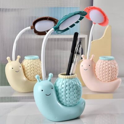 Cute Table Lamp, LED Night Study Light USB Charging Snail Animal Eye Protection Table Lamp with Adjustable Angle White Light for Kids Students